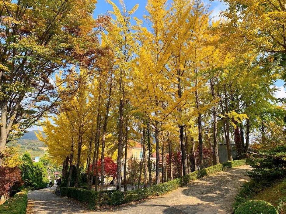 은행나무와 느티나무로 둘러싸인 비밀의 산책로를 걸으며 🍂 가을의 깊이를 느껴보세요. 이 길은 그저 걷기만 해도 마음이 편안해지는 매력을 지니고 있어, 방문객들에게 인기 있는 장소입니다.
