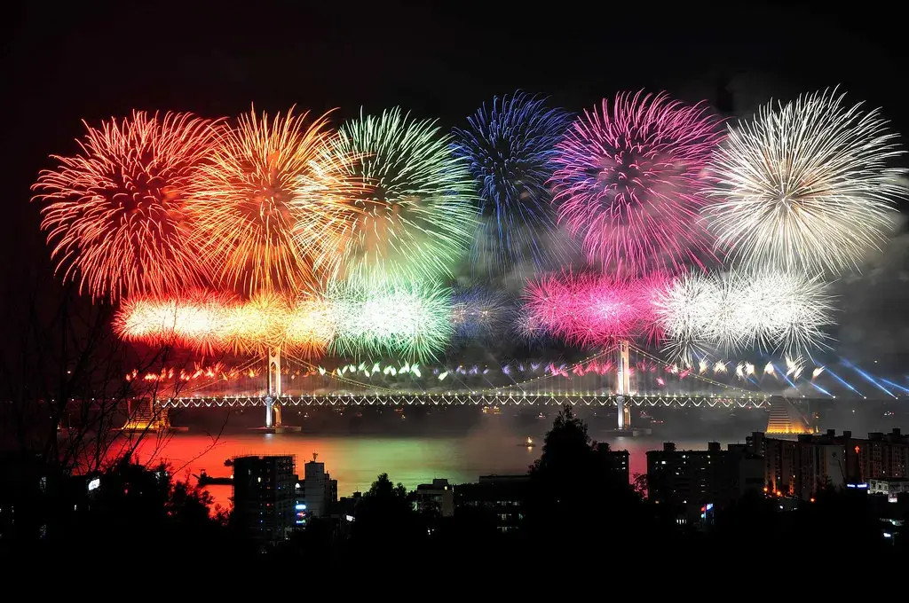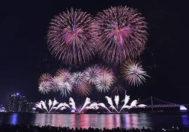 부산 불꽃축제는 매년 부산 광안리 해수욕장과 광안대교 근처에서 열리는 대규모 불꽃 축제입니다. 다양한 불꽃쇼, 레이저쇼, 그리고 음악이 함께 어우러져 아름다운 밤하늘을 연출하며 매년 100만 명이 넘는 사람들이 축제를 보러 오기 때문에 볼거리와 즐길 거리가 가득합니다.
