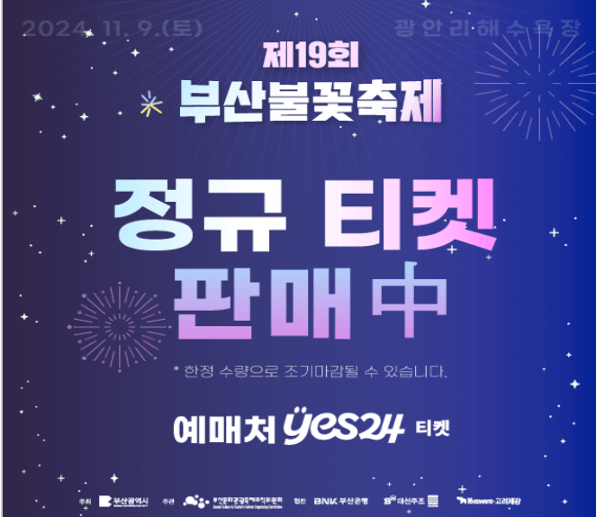 부산 불꽃축제의 얼리버드 티켓은 수량이 한정되어 있으므로 예매 시작 시간에 맞춰 미리 준비하고, YES24 같은 예매 사이트에 미리 로그인해 빠르게 결제하는 것이 중요합니다.