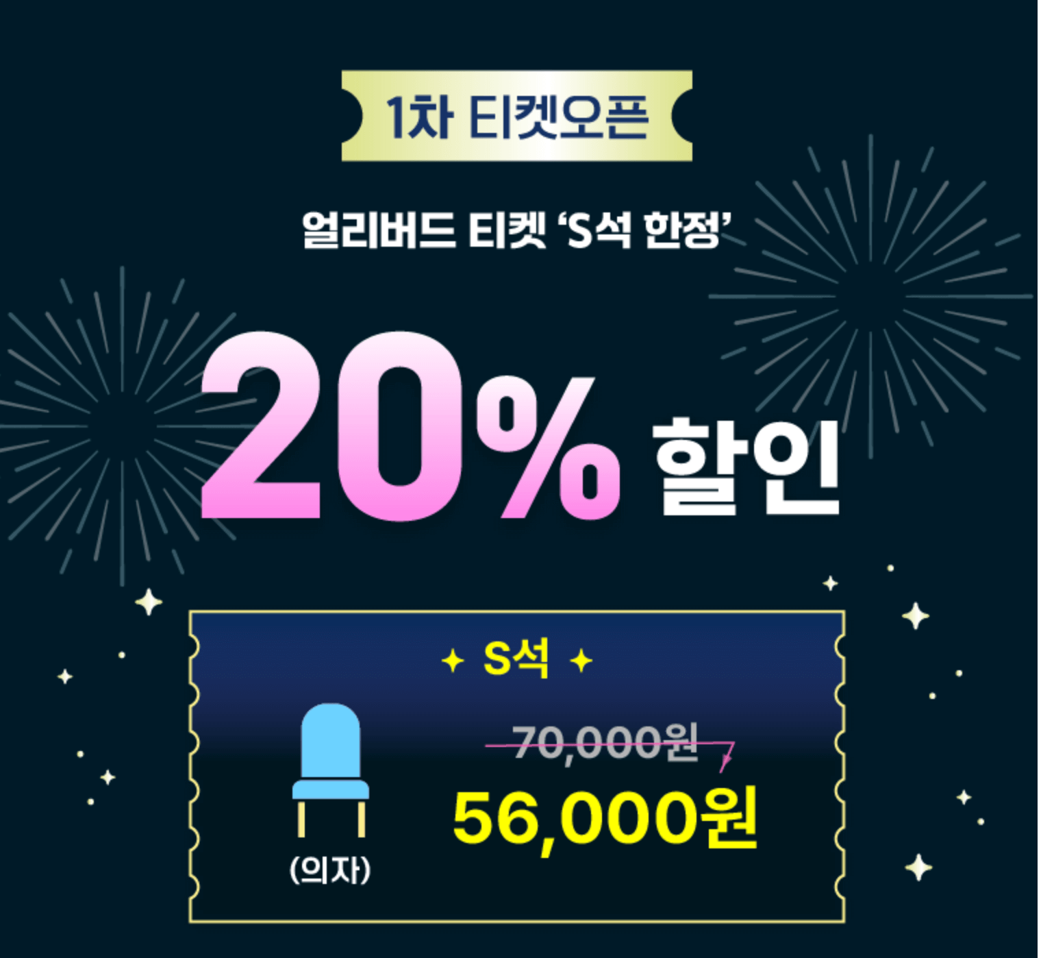 얼리버드 티켓뿐만 아니라 R석, S석 같은 티켓도 정규 판매 기간 동안 제공됩니다. 특히 S석은 얼리버드 티켓 시기에 구매하면 20% 할인을 받을 수 있어요.